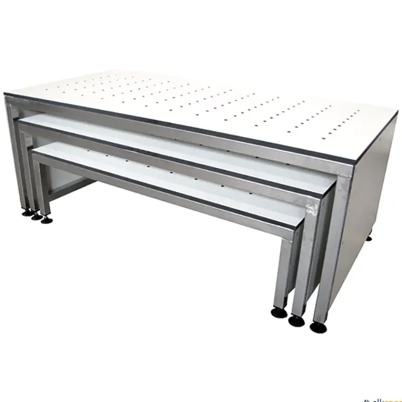 Pódium para entrega de premios en piscinas, fabricado en fibra fenólica de 12 mm de espesor y marco de tubo cuadrado de acero inoxidable galvanizado de 30 x 30 mm.