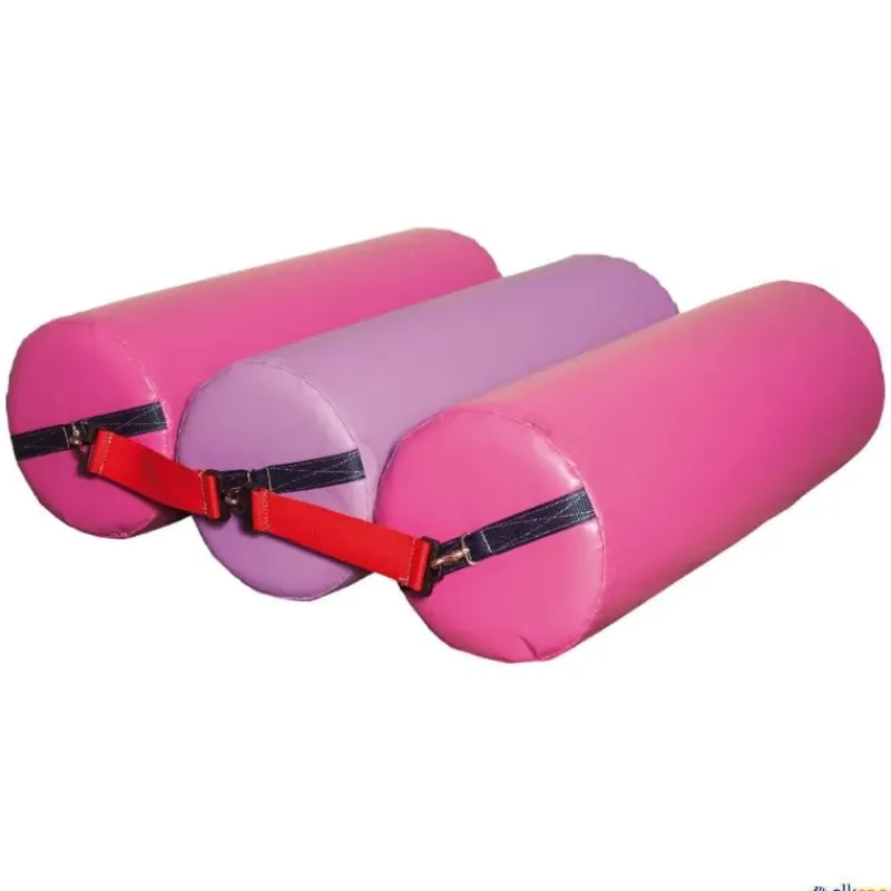 Conjunto de 3 rodillos de espuma forrada unidos por cintas laterales con enganches. La cinta se puede soltar para usar los cilindros por separado.