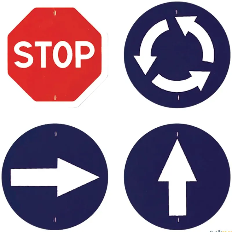 Conjunto de 4 señales de obligatoriedad para aprenderlas con experiencias divertidas, se colocan mediante 2 clips de sujeción en las picas, independientemente de su tamaño. A su vez existen diferentes posibilidades (ladrillos, conos, bases) para sostener las picas, por lo que se pueden conseguir circuitos de circulación estables y muy variados. Recorriéndolos a pie, con bicicletas, plataformas deslizantes o cualquier otro medio, los alumnos aprenderán a conocer y respetar las señales de tráfico.