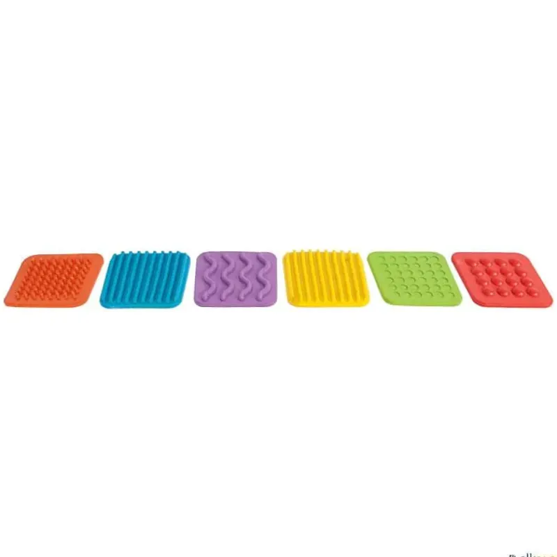 · El conjunto sensaciones plantares mini incluye: 6 placas de plástico mini, sin base (pincho fino, pincho grueso, línea fina, línea gruesa, agujeros y líneas curvas).