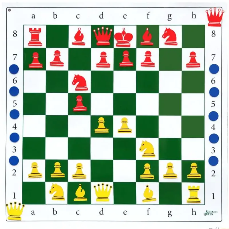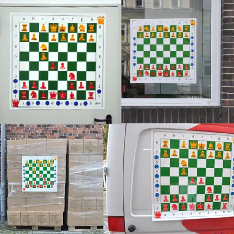 Este tablero de ajedrez se pega a cualquier superficie lisa como pizarras, cristal, baldosas, puertas, etc. Con 2 orificios para ganchos en caso de no tener superficie lisa. Incluye 10 fichas didácticas azules y 1 reina extra por color.