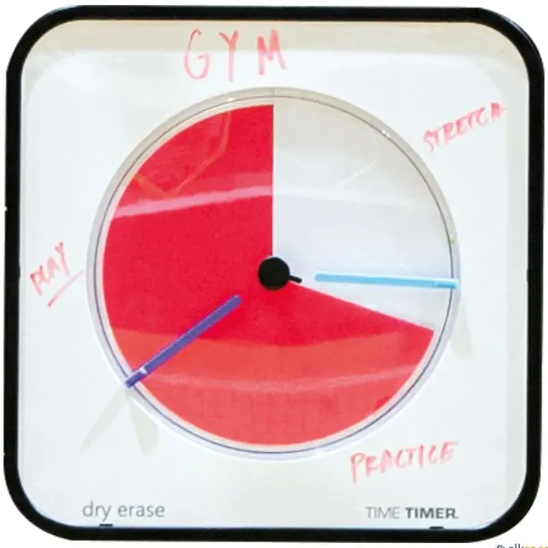 El temporizador ayuda a responder esta pregunta universal. Diseñado para ayudar a los estudiantes y deportistas a comprender «cuánto tiempo queda», ninguna otra ayuda para la enseñanza refuerza el concepto de tiempo transcurrido como el temporizador. Mueva el disco rojo hasta el tiempo deseado, el temporizador comienza la cuenta atrás y el disco rojo va desapareciendo, mostrando el tiempo que falta, esto hace que el paso del tiempo sea visual además de mostrar cuánto tiempo queda. Los niños entenderán fácilmente el temporizador de tiempo incluso cuando no puedan entender la hora en un reloj tradicional.