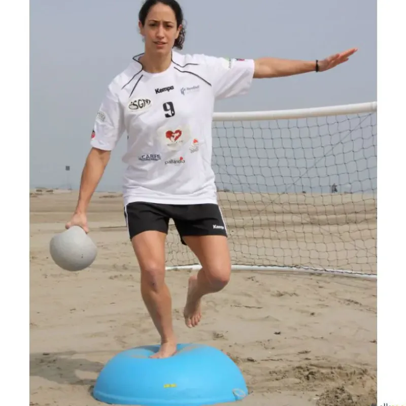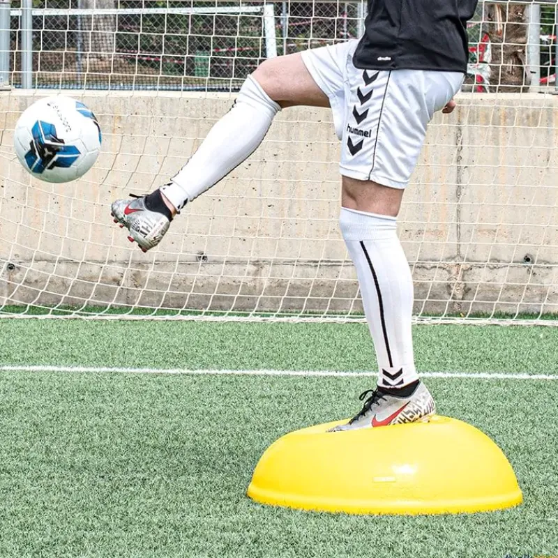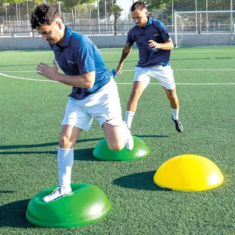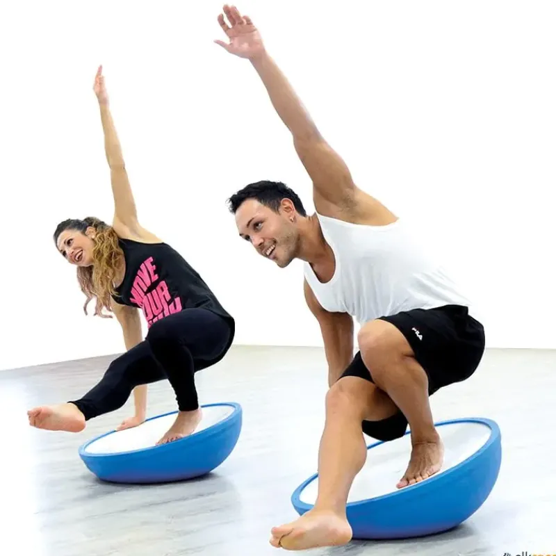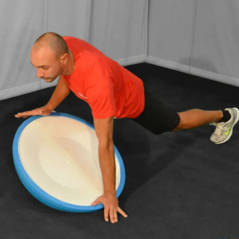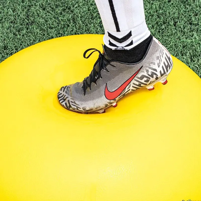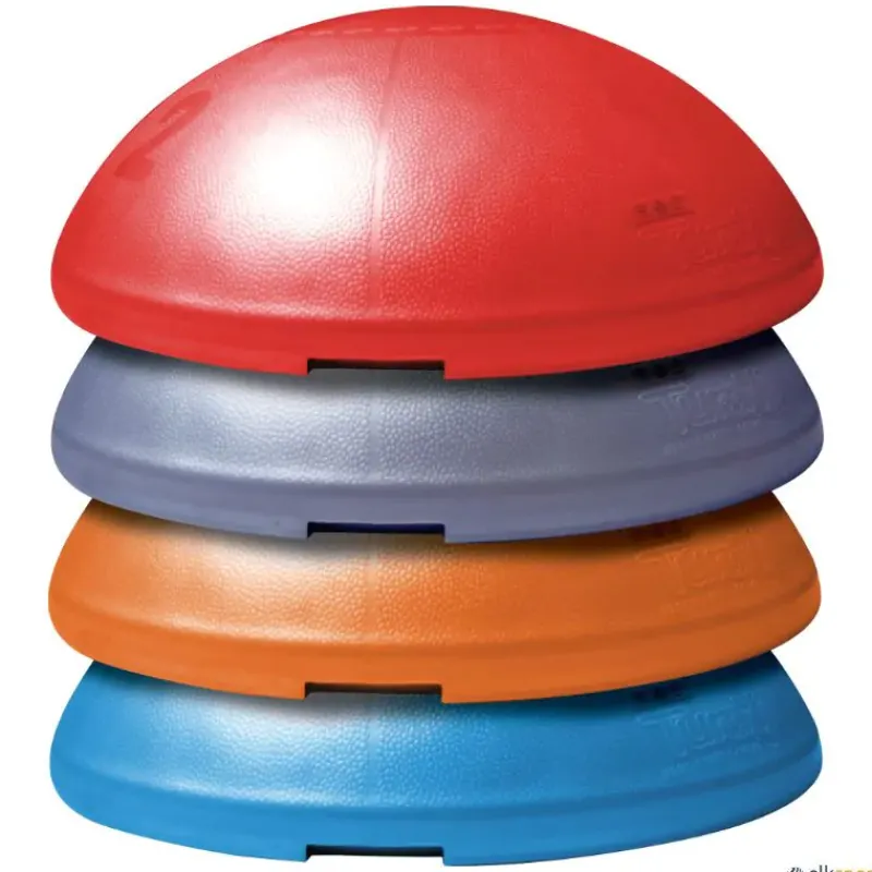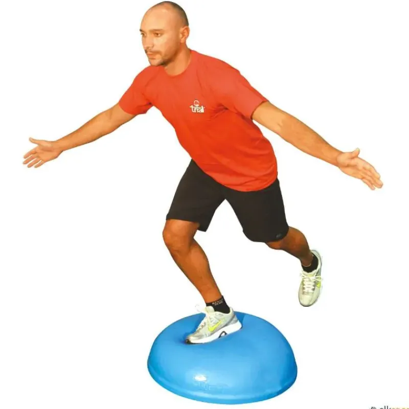 Semiesfera de equilibrio con un sinfín de posibilidades de trabajo. Para trabajar multitud de ejercicios, especialmente los propioceptivos y de refuerzo de la musculatura del tobillo y rodilla. Para evitar las costosas lesiones que se producen en estas articulaciones. Ultra resistente, hinchable. No necesita estantería, fácil de almacenar apilando una encima de otra.