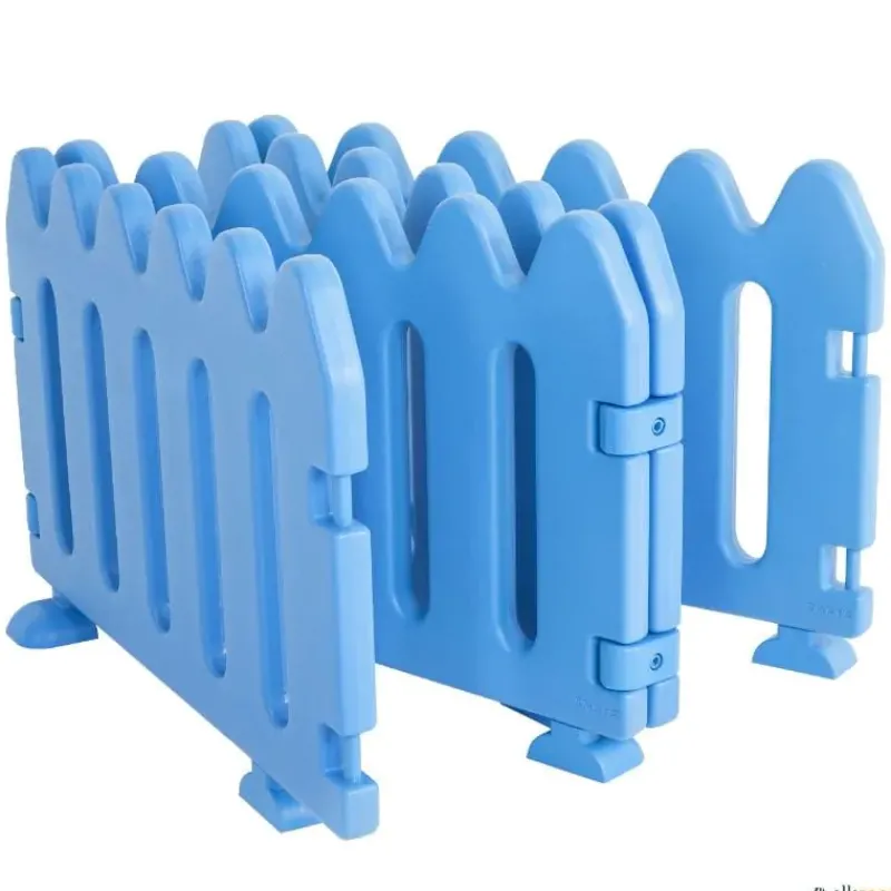 Vallas de guardería de fácil y rápido plegado. Se guardan fácilmente aprovechando al máximo el espacio. Fabricadas en un material ligero y resistente. Incluye los anclajes. Preparadas para usarse como piscina de bolas (pelotas mínimo de 7,5 cm de diámetro).