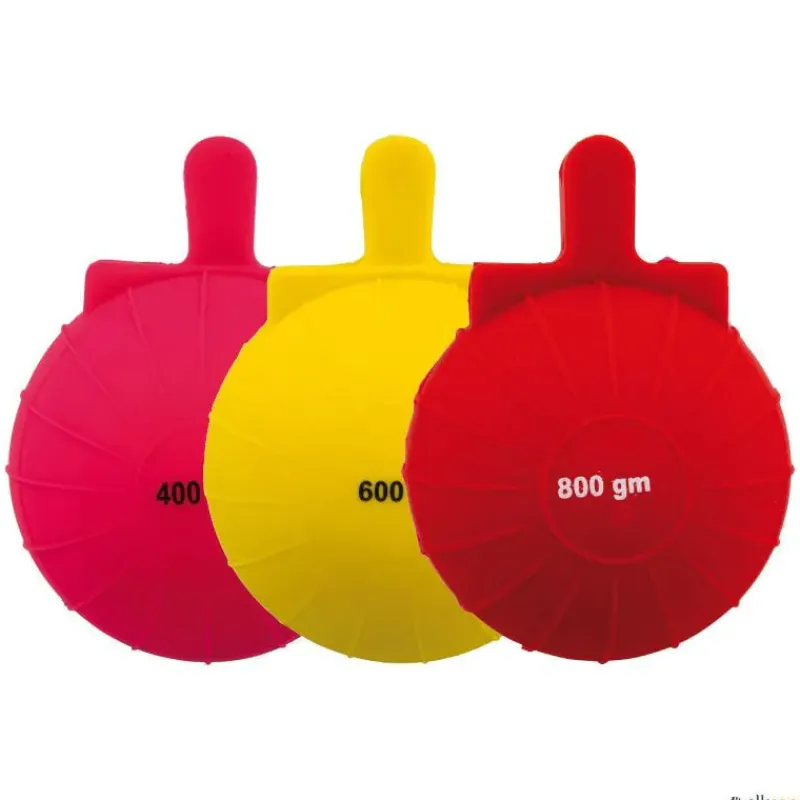 · 3 Pesos disponibles: 400 g (rosa) / 600 g (amarilla) / 800 g (roja).