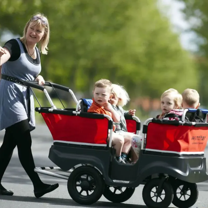 El Turtle Kiddy Bus hace que las actividades al aire libre sean más fáciles y seguras tanto para niños como para adultos. Es robusto, tiene un diseño que se centra en la seguridad, la durabilidad y la ergonomía. Los niños se sientan en parejas uno frente al otro, lo que les facilita conversar con sus amigos. Entran y salen por un lateral, como en un autobús real.