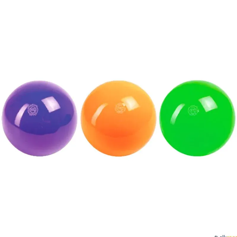 Pelota de gimnasia rítmica fabricada artesanalmente en un nuevo caucho, capa externa con barniz antideslizante. Más blanda y fácil de manejar, bote sin vibraciones.