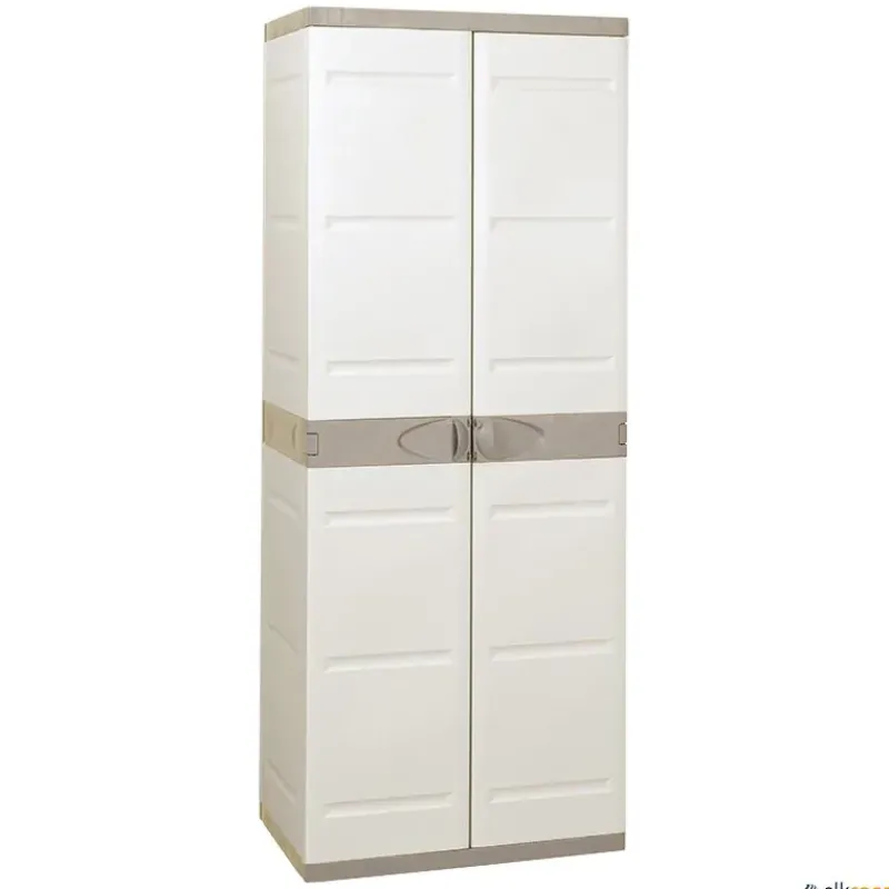 Armario fabricado en resinas plásticas de alta calidad. Robusto, resistente a ambientes húmedos. Montaje sencillo sin herramientas. Con posibilidad de cierre con candado (candado no incluido).