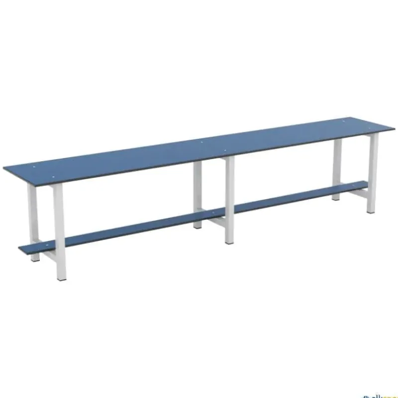 Banco fenólico sencillo recomendado para piscinas y vestuarios. Material totalmente antihumedad. Durabilidad y robustez. Estructura soldada en acero inoxidable de tubo de 30 mm. Pintado epoxi. Tacos en PVC.