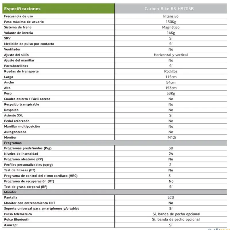 Garantía bicicleta estática Carbon Bike RS H8705B