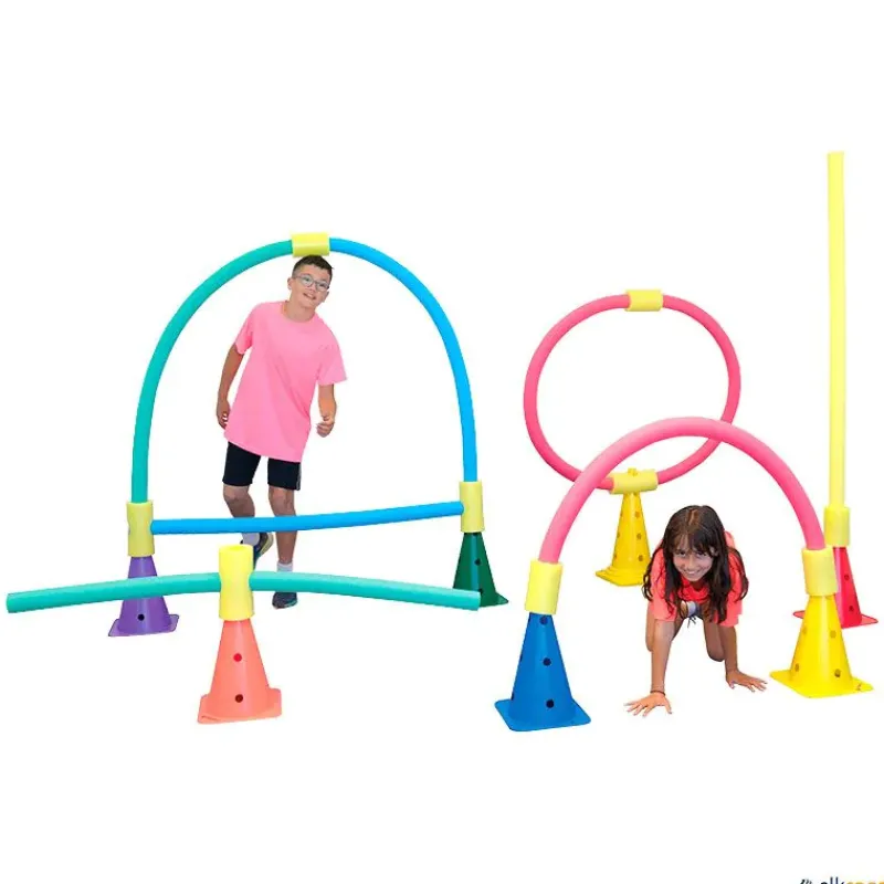 Con la ayuda de conos, estos churros de piscina y conectores de espuma no reticulada, puedes formar recorridos de obstáculos divertidos, vallas, dianas, etc. En colores variados.