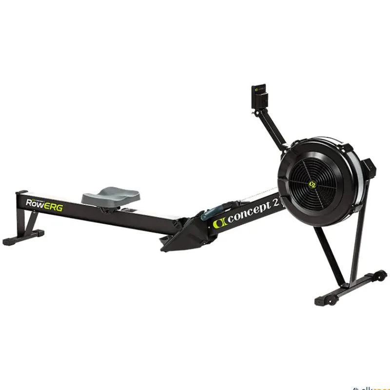 El RowErg Concept2 es una máquina de ejercicio de remo profesional con un ventilador de resistencia de aire, un asiento deslizante y un monitor de rendimiento electrónico auto-calibrante.