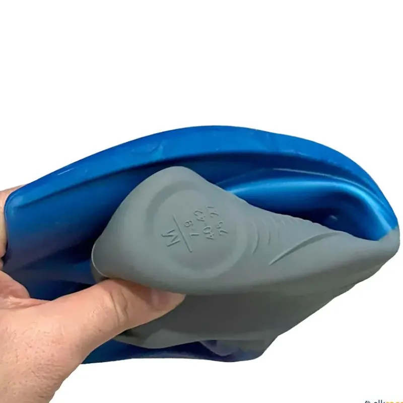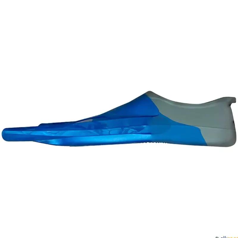 · Silicona de dureza Shore 75, utilizada en la pala y media suela, ofrece una excelente combinación de ligereza, elasticidad y resistencia frente al cloro, la sal, el ozono y los rayos UV. Su estructura irrompible y su capacidad para amortiguar pequeños impactos la hacen perfecta para su uso en piscina o en el mar.