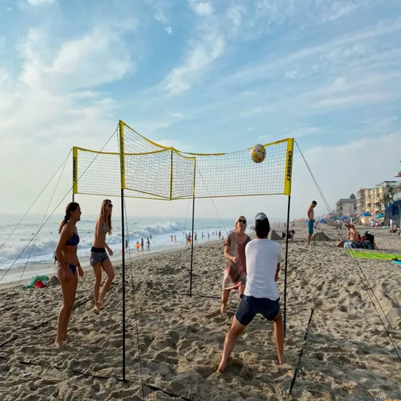 Crossnet es un deporte que combina elementos de voleibol y cuatro cuadrados.