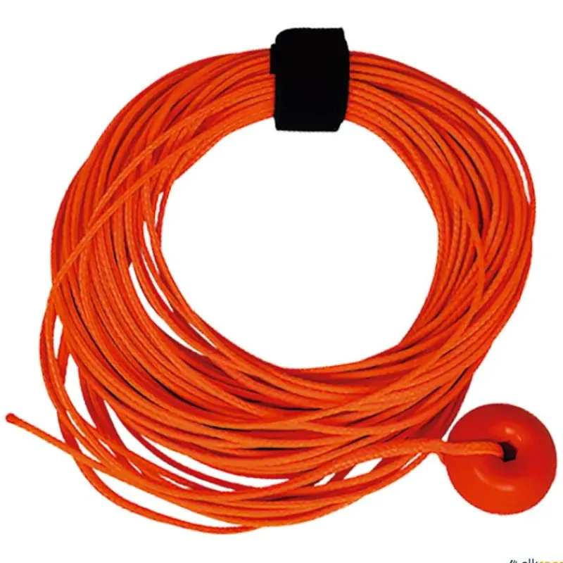 Cuerda de salvamento flotante de polietileno para aros salvavidas. Incluye flotador donut rojo en un extremo que se utiliza para fijarse al aro salvavidas y facilitar su extracción durante un rescate. La cuerda de salvamento no incluye aro salvavidas.