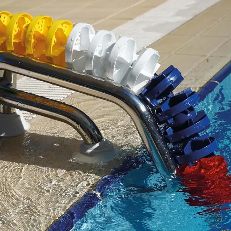 Este producto de diseño exclusivo está fabricado en acero inoxidable AISI-316L, lo que le confiere una alta resistencia y durabilidad. Su forma está especialmente diseñada para colocar y retirar corcheras de cualquier tipo de piscina de manera segura, sin dañarlas. Es fácil de instalar en el borde de la piscina, práctico y cómodo de transportar.