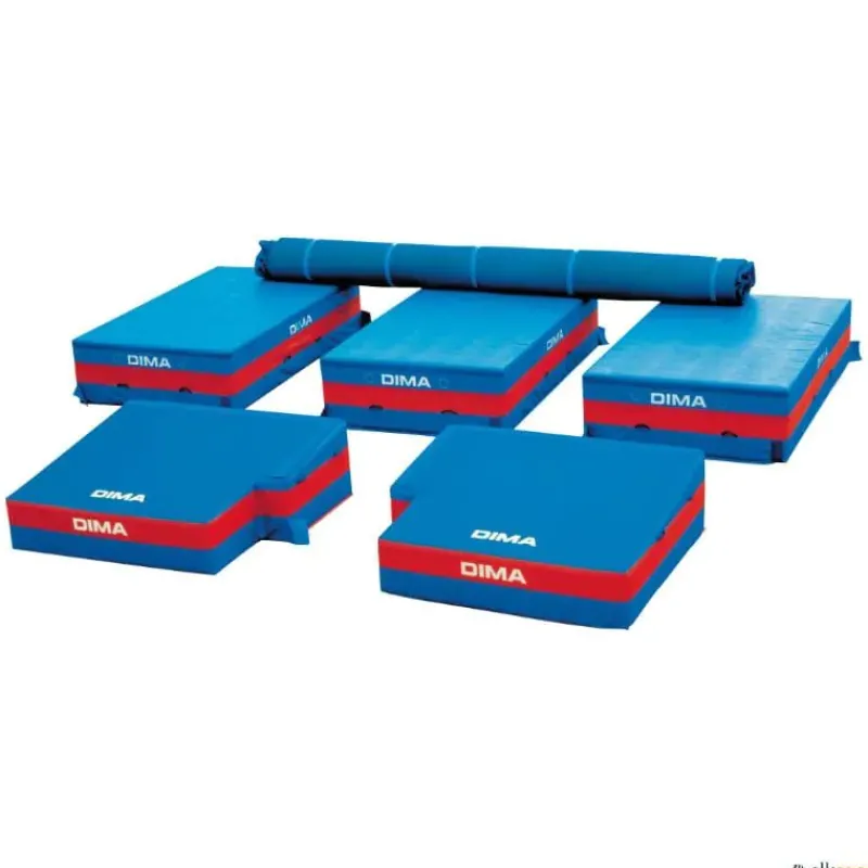 Zona de caída Dimasport para saltos de altura y pértiga ideal para la escuela o la iniciación. Su concepto único de bloques yuxtapuestos permite practicar el salto con pértiga (con avances reales) o el salto de altura. Muy versátil, los diversos elementos también se pueden utilizar para la recepción de gimnasia, mini trampolín, etc. Transporte y almacenamiento muy fácil.