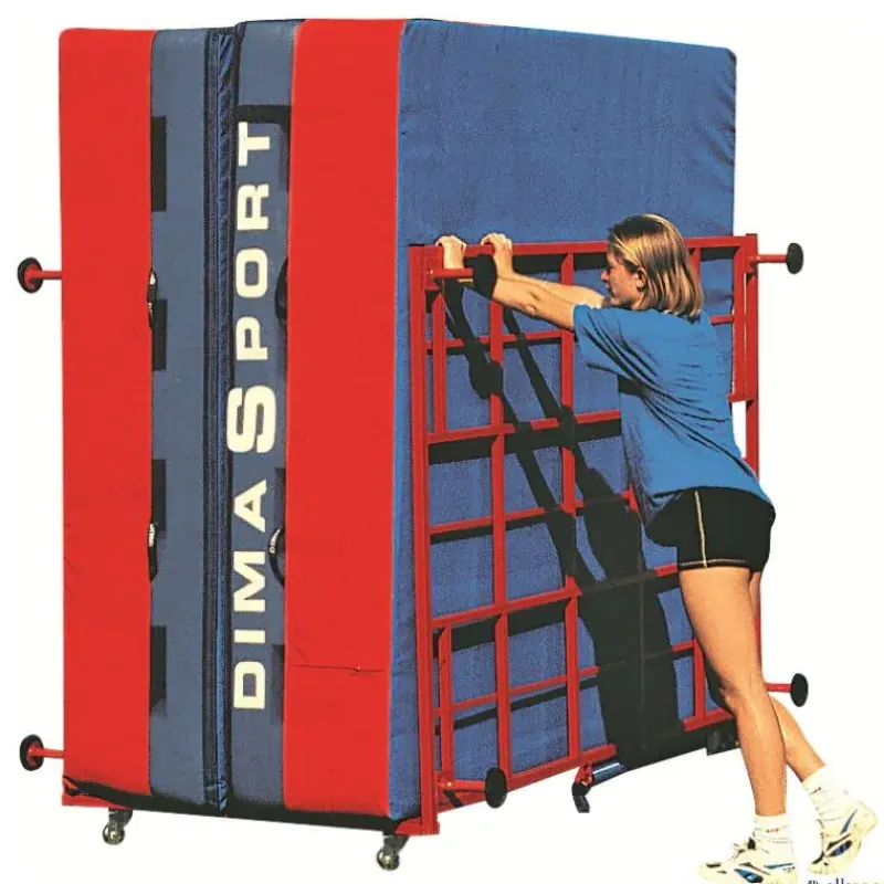 Zona de caídad de altura Dimasport perfectamente diseñada para una recepción segura tanto en la escuela como en el club. La zona se coloca en una rejilla plegable para manipularla y almacenarla muy fácilmente contra una pared o en un espacio pequeño.