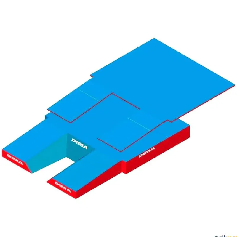 Compuesto por bloques Airfoam de DIMA, que comprende un conjunto de paneles de espuma de alta calidad con diferentes capacidades de carga, lo que garantiza un aterrizaje bien controlado y duradero para todos los tamaños corporales y desde todas las alturas.