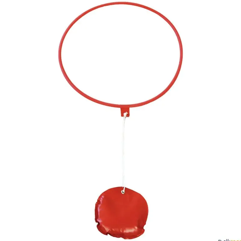 Aro con peso para divertirse debajo del agua. Mediante la regulación de la cuerda que une el aro y la bolsa con peso, se puede situar el aro a la profundidad que se quiera, manteniéndose estable.