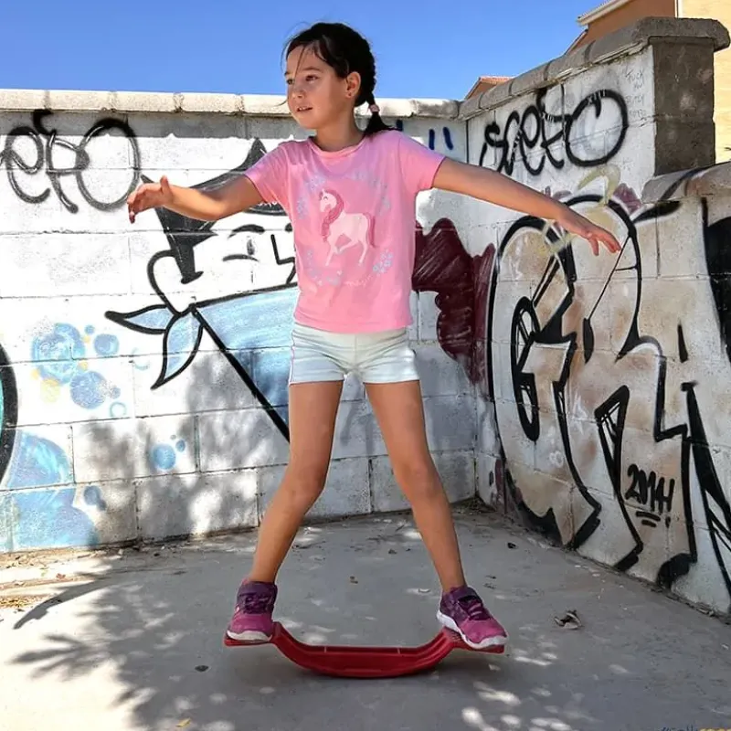 Para balancearse y caminar como los patos. Este sencillo producto es uno de los mejores elementos de balanceo del mercado. Con un diseño sencillo permite: balancearse, girar 360° o caminar con él como los patos en una superficie lisa. También puede ayudar a desarrollar el tren superior apoyando una mano en cada extremo. Fabricado en una pieza de polipropileno reforzado.
