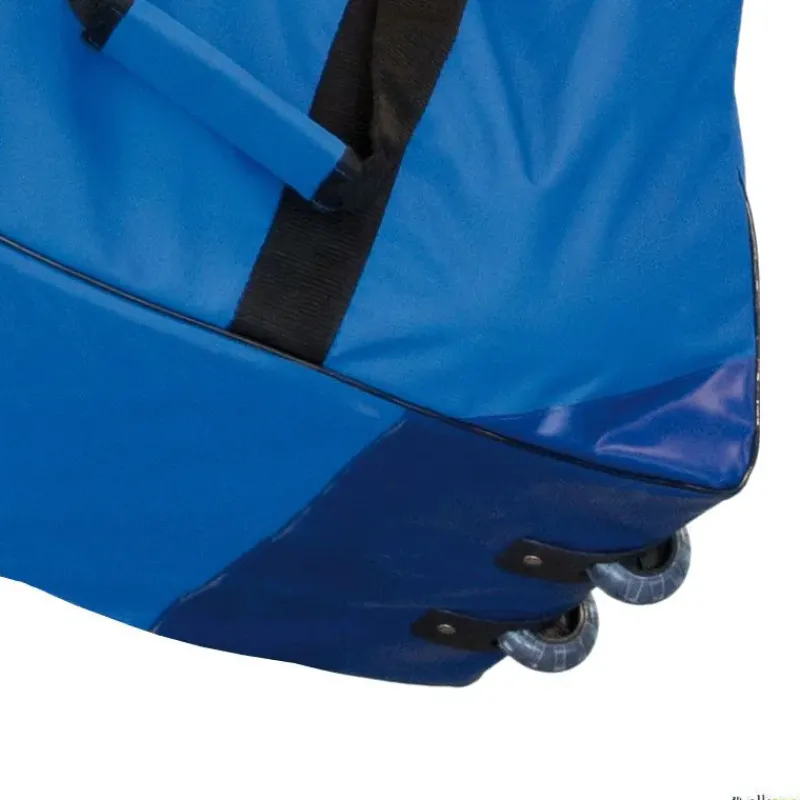 Bolsa polivalente fabricada en nailon reforzado. Dispone de ruedas en un extremo y asa en el otro para facilitar su transporte, además de una bandolera ajustable en el lateral. Muy adecuada para guardar todo tipo de equipaciones, balones u otros materiales y transportarlos cómodamente.