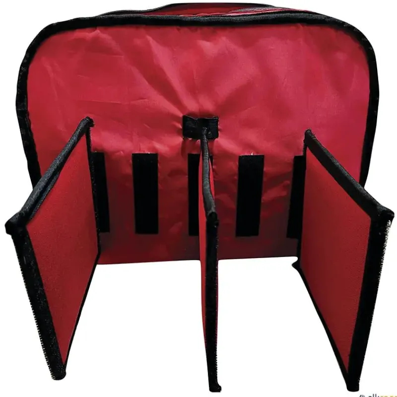 Botiquín con abertura en la parte superior, con separadores móviles en su interior, dos bolsillos en su parte externa, uno de ellos para botella. Asas reforzadas. Se sirve vacio.