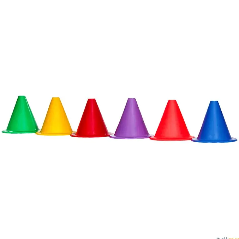 Disponibles en unidades o conjuntos de 6 conos en 6 colores (amarillo, azul, naranja, rojo, verde y violeta) a un precio más económico.