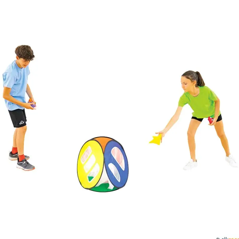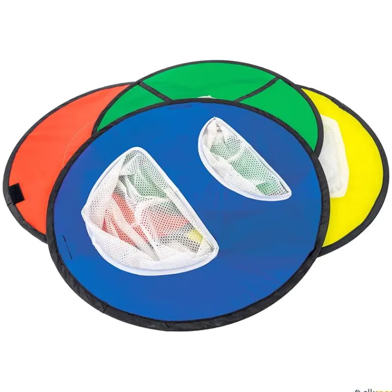 Cada una de las cuatro caras de esta diana permite un juego y un desafío diferente. Diana pop up 4 en 1 para golf y lanzamientos de objetos pequeños como saquitos, pelotas o bolas de golf. Fabricada en fibra de vidrio, tejido de poliéster y tejido de malla de poliéster.