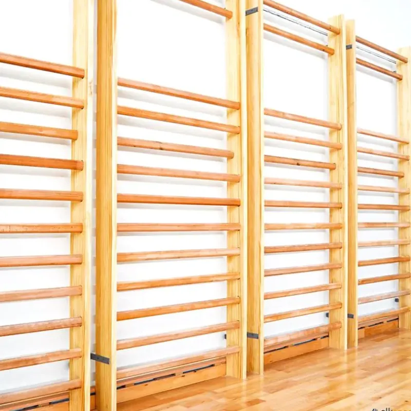 Espalderas fabricadas en madera de primera calidad (travesaños de haya). Sujeciones metálicas para atornillar a la pared incluidas (no se incluyen tacos y tornillos ya que depende del tipo de pared). Acorde normativa UNE-EN 12346. Se suministran montadas.