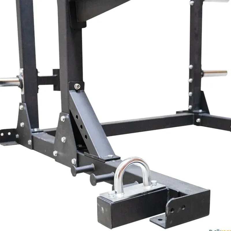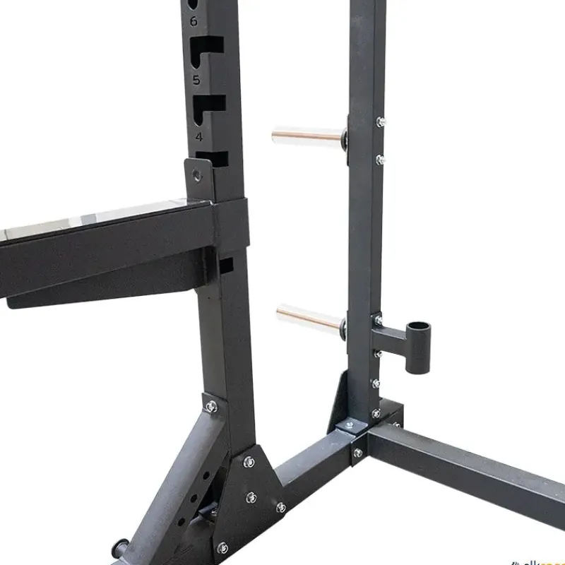 · 8 Soportes (4 por lado) de almacenamiento para discos olímpicos y Bumper Plates.