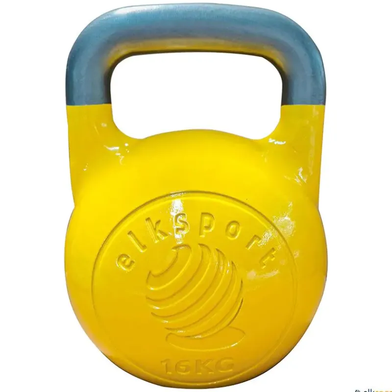 Kettlebell de competición fabricada en acero y con un asa especial sin pintura que facilita los movimientos, así como el uso de magnesio. Todas las kettlebells son de la misma forma y medidas independientemente del peso, aunque cada una tiene un color distinto para facilitar la elección de la kettlebell durante el entrenamiento.