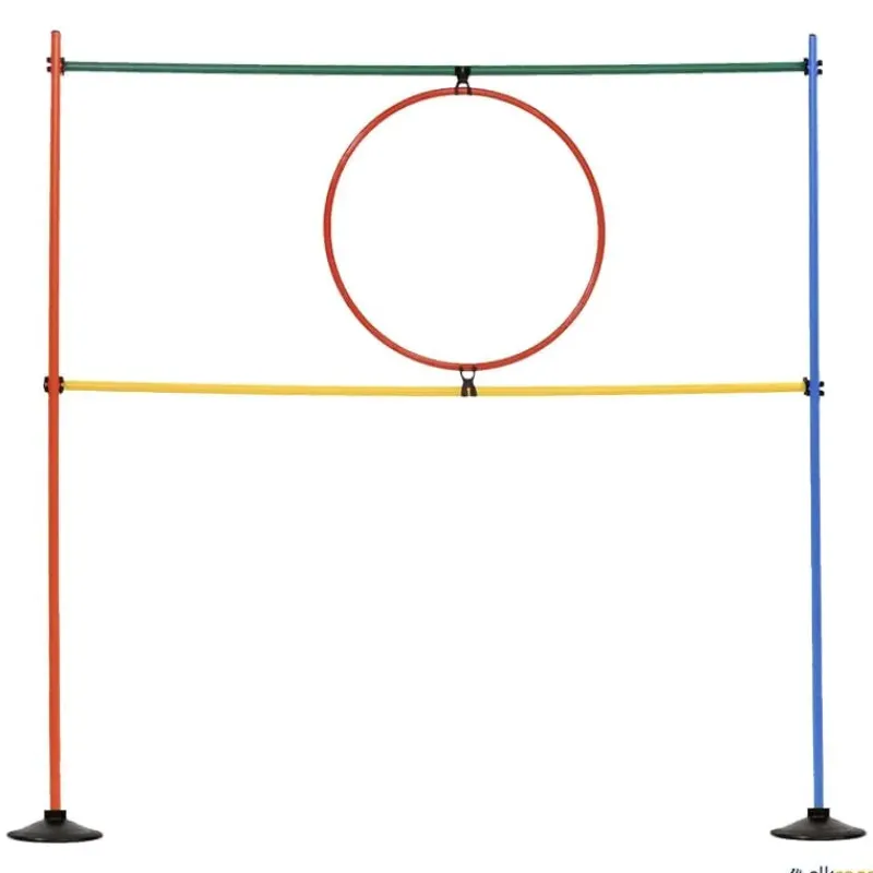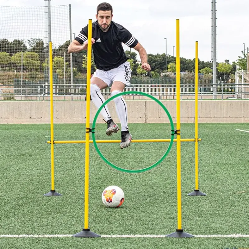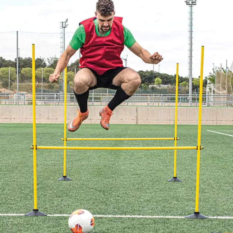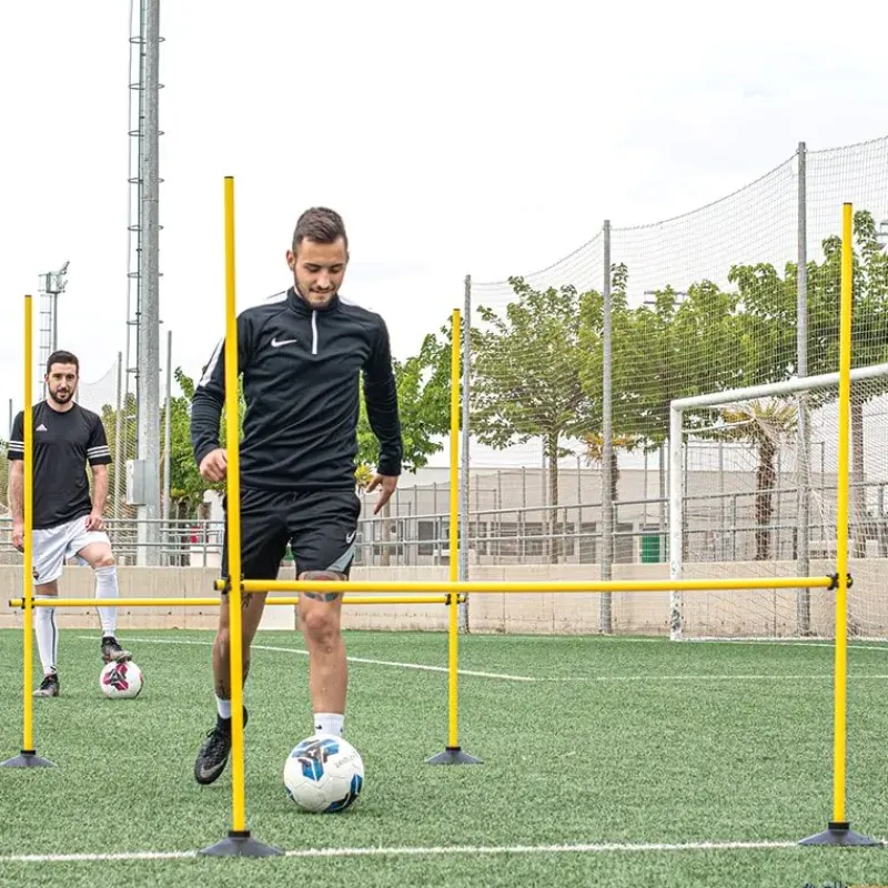 Kit de motricidad con múltiples funciones: valla regulable, postes de señalización, mini porterías, base, para ejercicios de lanzamiento y precisión, circuitos de habilidad, fuerza, etc.