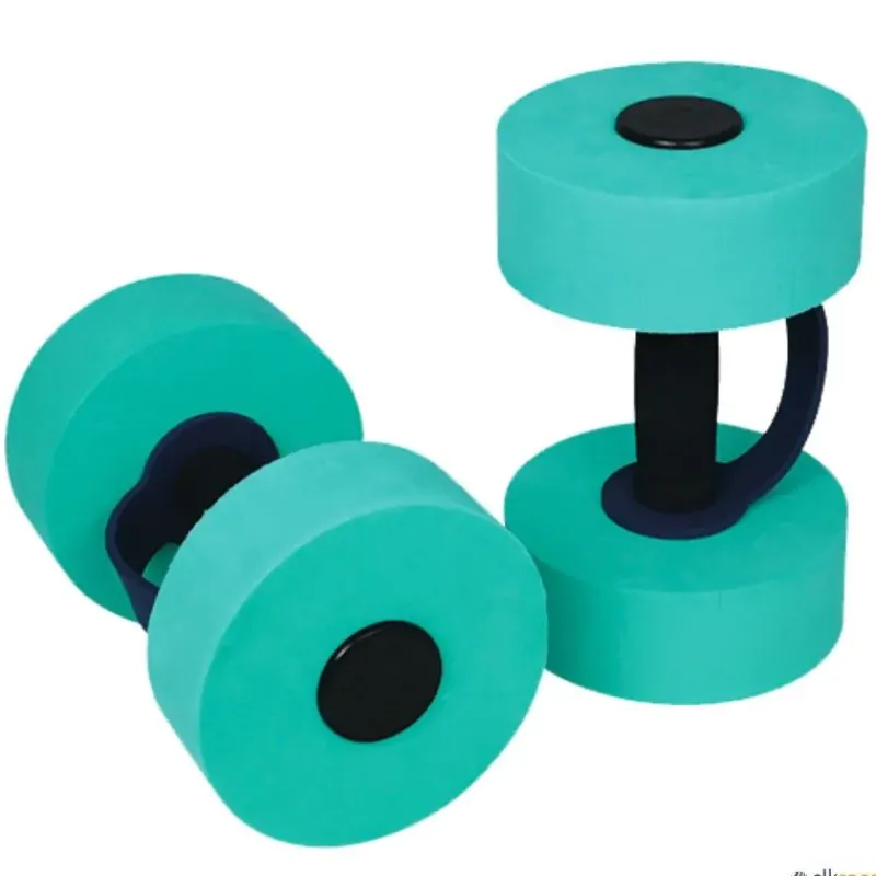 Par de mancuernas acuáticas redondas con cinta para mejorar el agarre, su diseño permite realizar diferentes niveles de esfuerzo en los brazos, pero además habrá que valorar la longitud de la empuñadura y la anchura de la pieza en los extremos. Empuñaduras fabricadas en NBR para un agarre más confortable.