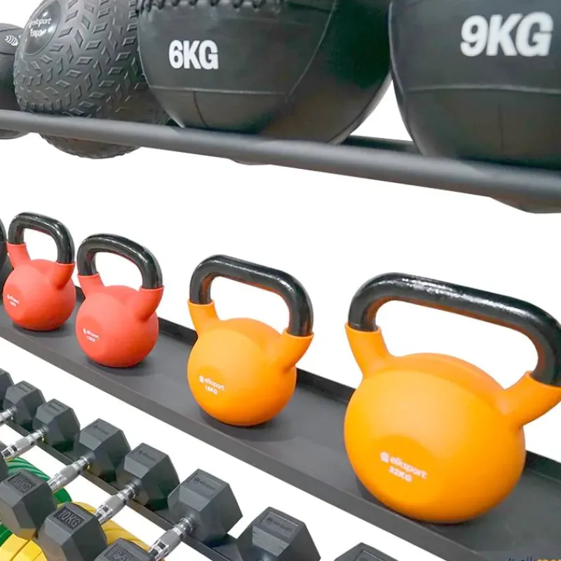 · Estante para kettlebells: soporta hasta 270 kg. Ideal para mantener una fila estable y accesible.
