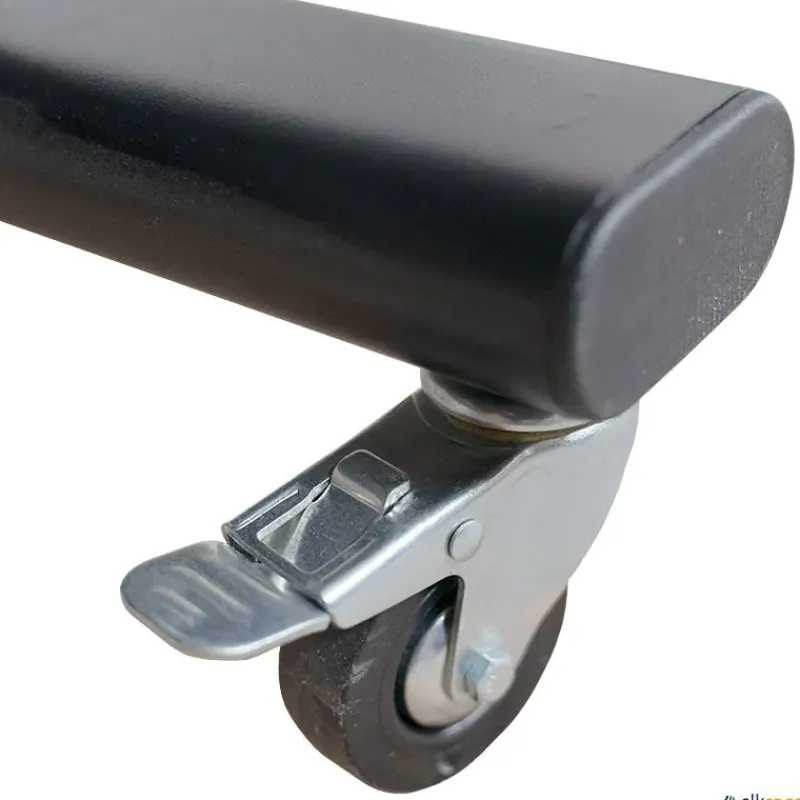 Mueble para almacenar y transportar barras lastradas. Dispone de ruedas para facilitar su desplazamiento, dos de ellas con freno. El mueble no incluye barras lastradas.