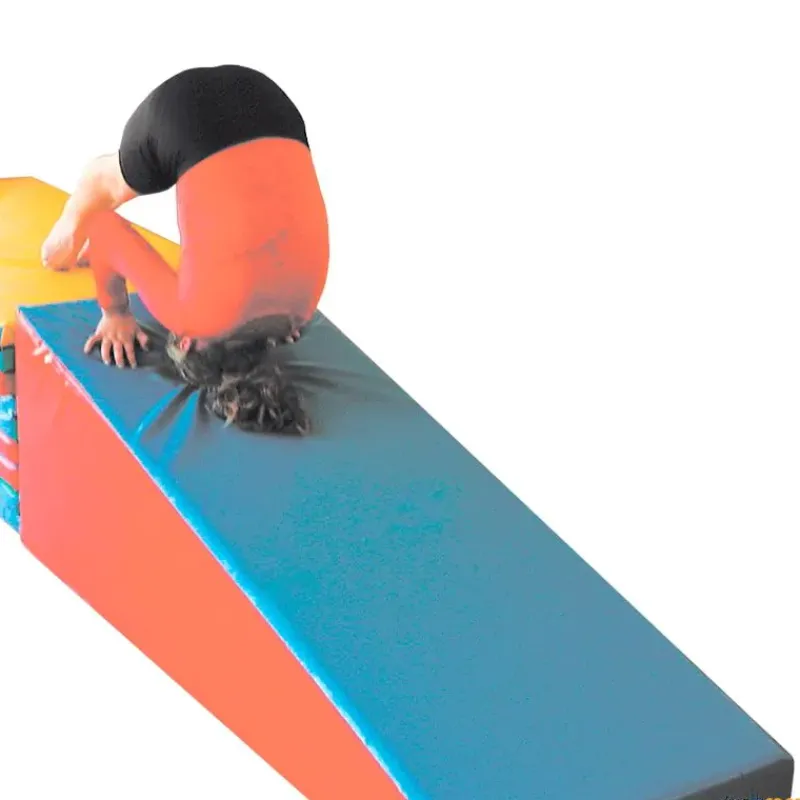 Plano inclinado de espuma forrada, ayuda al profesor en la enseñanza de las evoluciones gimnásticas. En espuma de densidad 25, va a facilitar los aprendizajes de muchas habilidades gimnásticas.