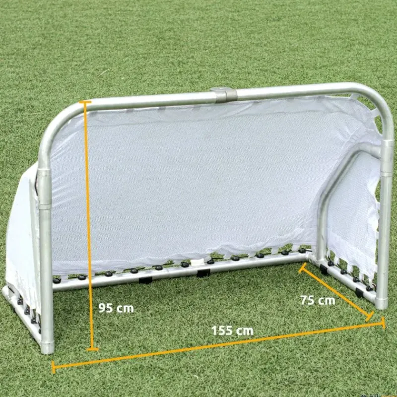 Portería de entrenamiento resistente y plegable, con marco de aluminio de alta calidad soldado. Para ser utilizada en interior y exterior. Ofrece una estabilidad óptima en combinación con su red de nailon elástico. Se pliega por el centro del travesaño y por los soportes de la red para facilitar su transporte y almacenamiento.