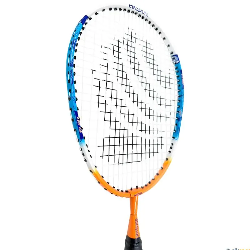 Raqueta de bádminton para iniciación. Fabricada en aluminio con un marco sobredimensionado en forma de gota y mango muy corto.