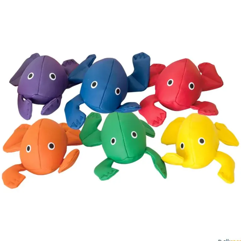 Los saquitos blandos con forma de ranas suponen la recreación en animales de uno de los objetos más comunes de iniciación a lanzamiento y recepción. Cada animal de este Zoo está relleno de cápsulas de plástico para una mejor sensación táctil. Para poder lanzar a dianas de colores, paracaídas, malabares, juegos de lanzamiento y recepción.