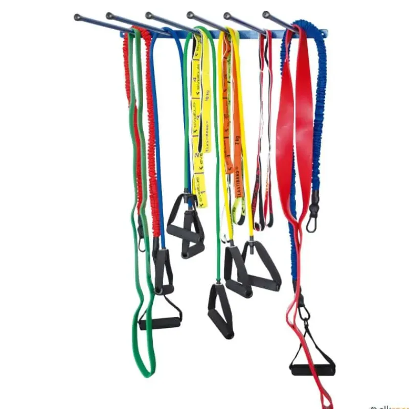 Soporte metálico para cuerdas y elástico, para atornillar a la pared.