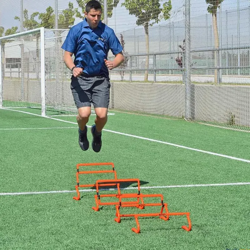 Valla versátil de cuatro niveles excelente para entrenamientos de coordinación. Consiste en una valla y dos extensiones de altura.