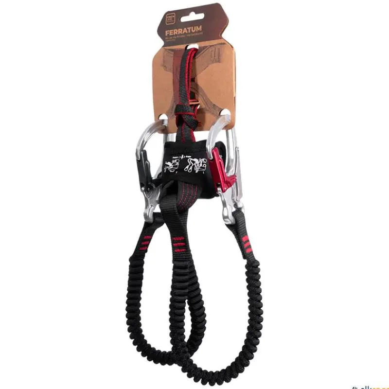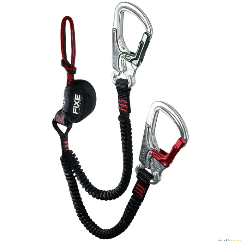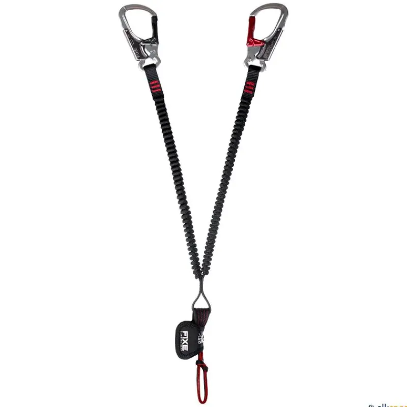 Sus brazos elásticos de poliéster ofrecen gran alcance (de 75 cm a 128 cm), y los mosquetones asimétricos de aluminio con sistema de doble desbloqueo garantizan una sujeción segura y rápida. El código de colores facilita la orientación durante el uso, especialmente útil en situaciones exigentes.