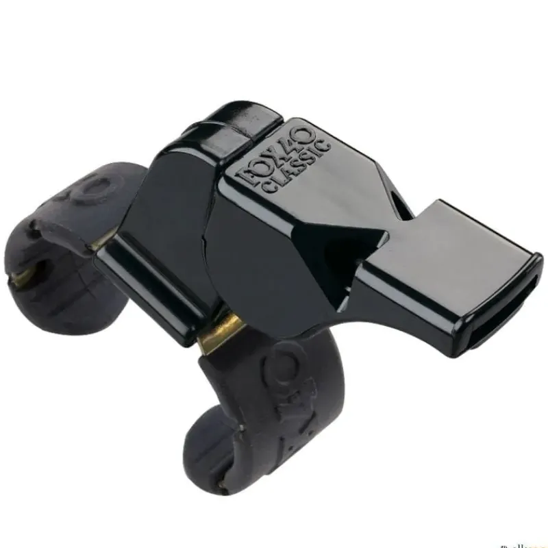 Con las mismas características que el original silbato Fox 40 Classic pero incorporando un agarre para los dedos ajustable que se adapta a tus dedos índice y corazon de forma segura y cómoda. Su gran potencia de sonido (115 dB) permite que el silbido se escuche por encima del ruido ambiental y de multitudes ruidosas. No es necesario ejercer un soplido fuerte para conseguir un potente sonido.