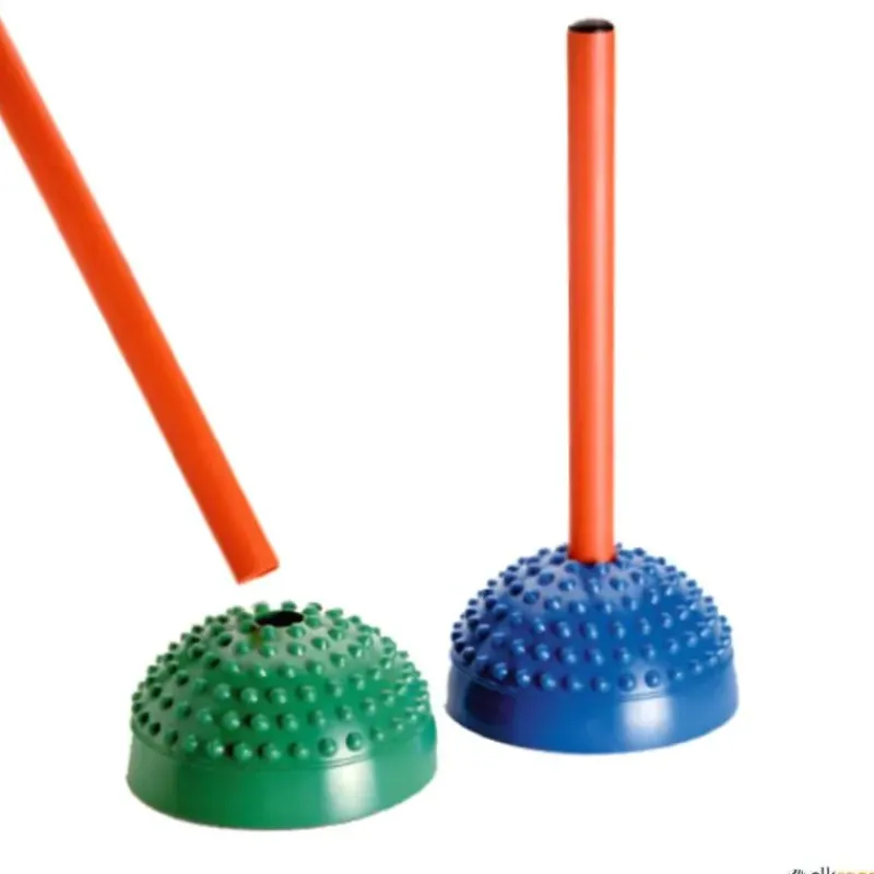 Semiesferas blandas de vinilo con superficie granulada. Se adhieren bien a las superficies lisas, por lo que se puede caminar por ellas pisándolas, o se pueden rellenar con agua y utilizar como base para picas.