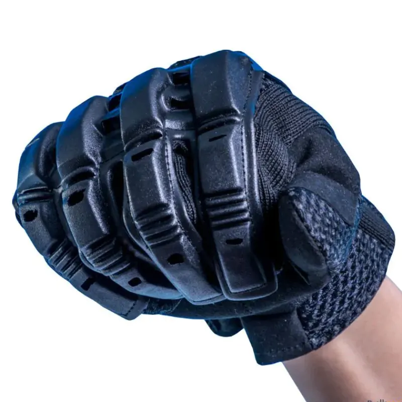 · Parte posterior protectora y flexible: La parte posterior del guante está fabricada con una combinación de malla transpirable y una pieza de plástico protector flexible. Este diseño no solo protege las manos contra impactos y roces, sino que también ofrece libertad de movimiento y una protección adicional para la parte superior de la mano, crucial durante un partido de Showdown.