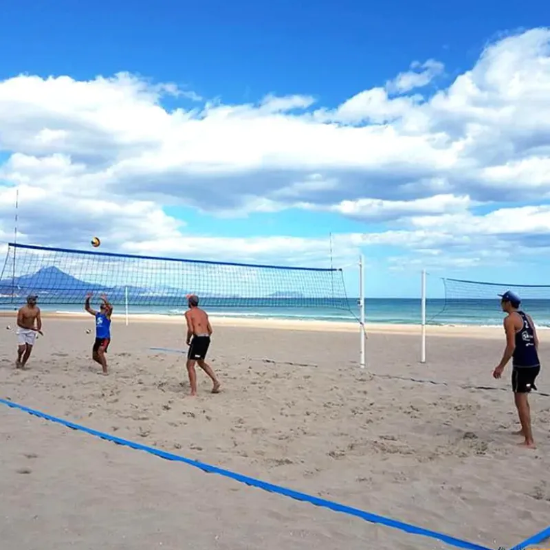 Cintas para delimitar el terreno de juego en la arena de la playa. Válida para los deportes vóley playa y tenis playa.