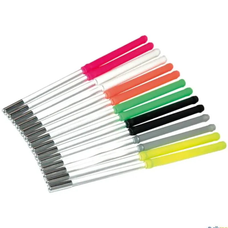 Palos para diábolo flexibles, irrompibles, ideales para principiantes y malabaristas. Permiten más aceleración en pocos movimientos. Evitan traumatismos ya que la cuerda gira libre dentro del palo. Mango de goma negro o de silicona en diversos colores. Incluyen cuerda.