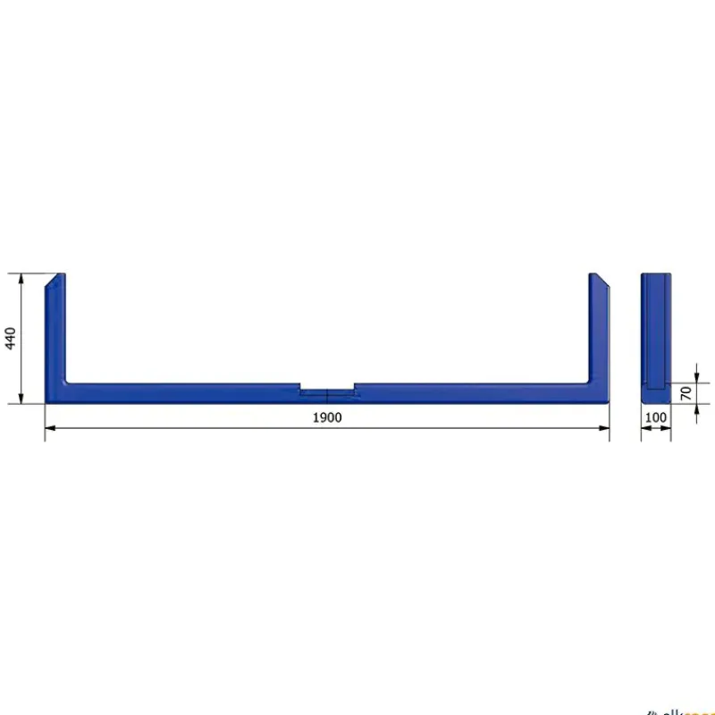 La sección del acolchado es de 100 x 70 mm, siendo el grosor del mismo de 50 mm en la parte inferior y 20 mm en las partes frontal y trasera del tablero. Resulta un espacio para el tablero de 60 mm. Se puede acoplar a cualquier espesor de tablero.