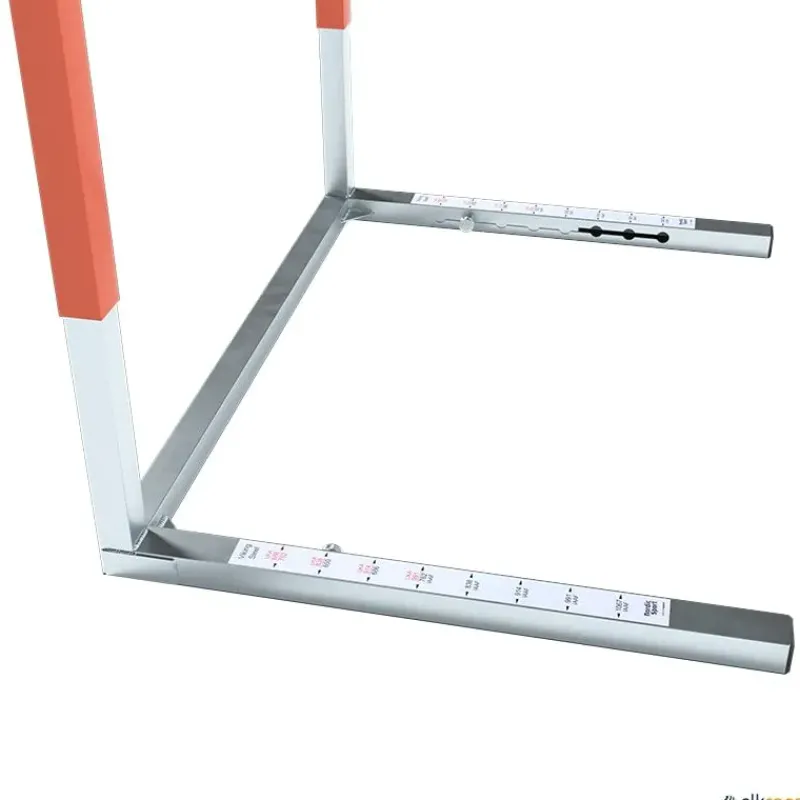Valla de atletismo Nordic Viking de competición universal fabricada en aluminio y acero. Los pesos de la base están galvanizados para que el ajuste sea fácil y sin problemas. El ajuste de altura se controla con cierres de resorte de seguridad. Listón de valla de plástico. Valla de atletismo de la marca Nordic Sport con certificación World Athletics.